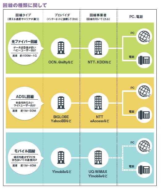 インターネット回線は速度やエリアによって選べる種類が異なります。 業務内容に応じて適したものを選ぶと同時に、NTTおよび入居予定の物件管理会社にも事前に確認しておくと安心です。