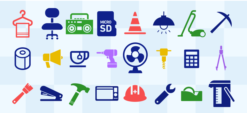 ソロエルアリーナに登録されている商品は、文具・事務OA用品、生活用品、オフィス家具など一般のオフィスに加えて、工場用消耗品、工具、安全用品、理化学、実験消耗品など、多種多様な仕事場を支える幅広い品揃えをご用意しております。