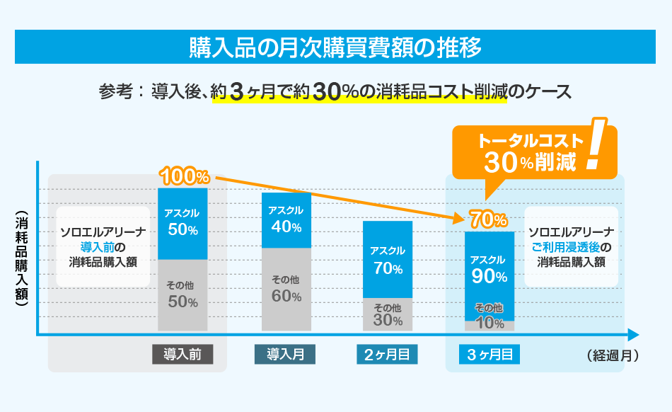 ソロエルアリーナのご利用浸透につれて個別発注が集約され、トータルコストが削減されます。