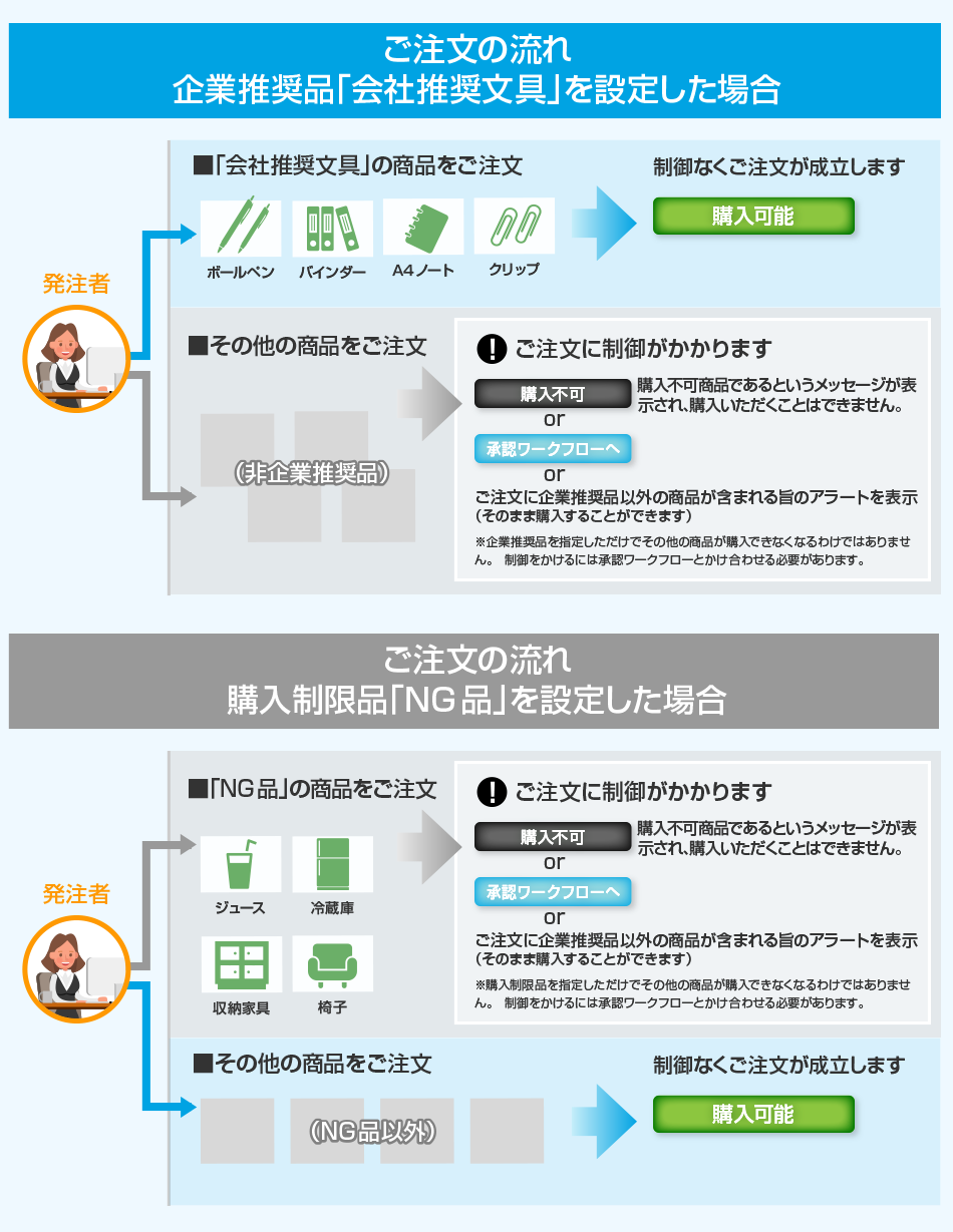 コストや環境への配慮を考えて、会社で購入する推奨する商品を指定、もしくは制限する商品を指定したい。