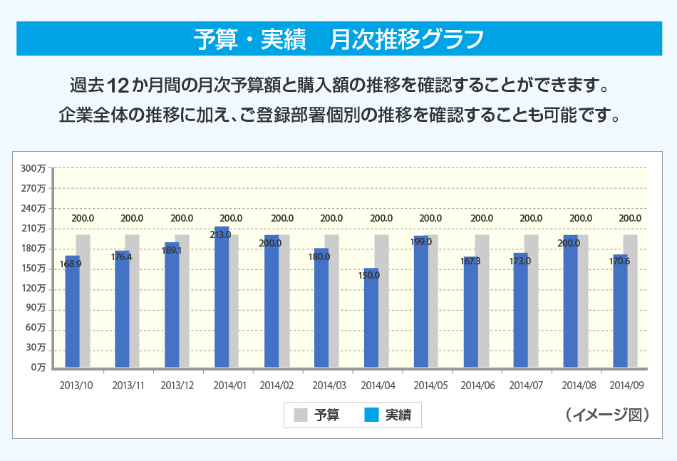 ・誰が、いつ、何を、いくらで購入したかのをチェック可能で、ムダな購入の確認ができます。