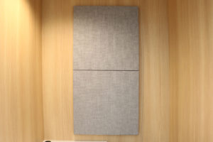 室内における音や声の反響を軽減する高性能な吸音パネルを標準装備。