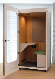 デザインは、シンプルかつオフィス空間に馴染むカジュアルテイストを採用し、 コンパクト・軽量でありながら、必要十分な遮音・吸音性能を実現しています。