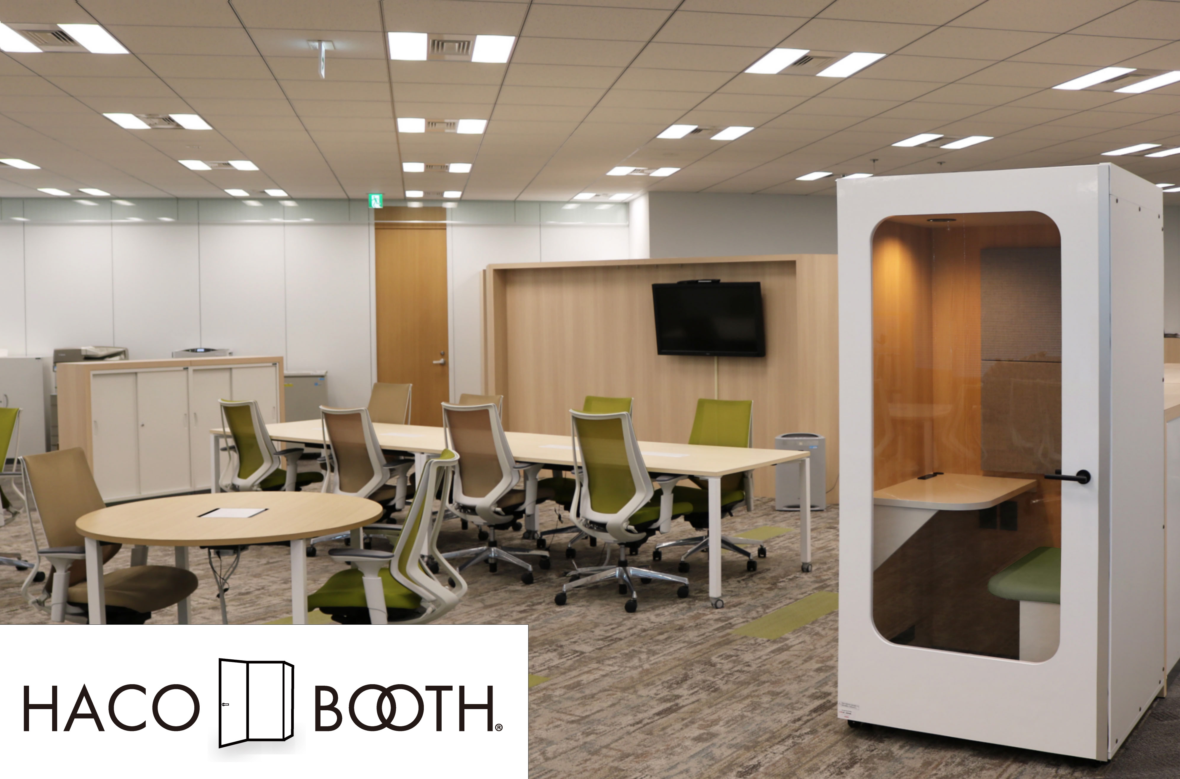 コーユーレンティアのHACO BOOTH(ハコブース)は、オフィスや学校・公共施設など様々な場所で、 「周囲に気兼ねなく仕事に集中できる空間」を実現します。