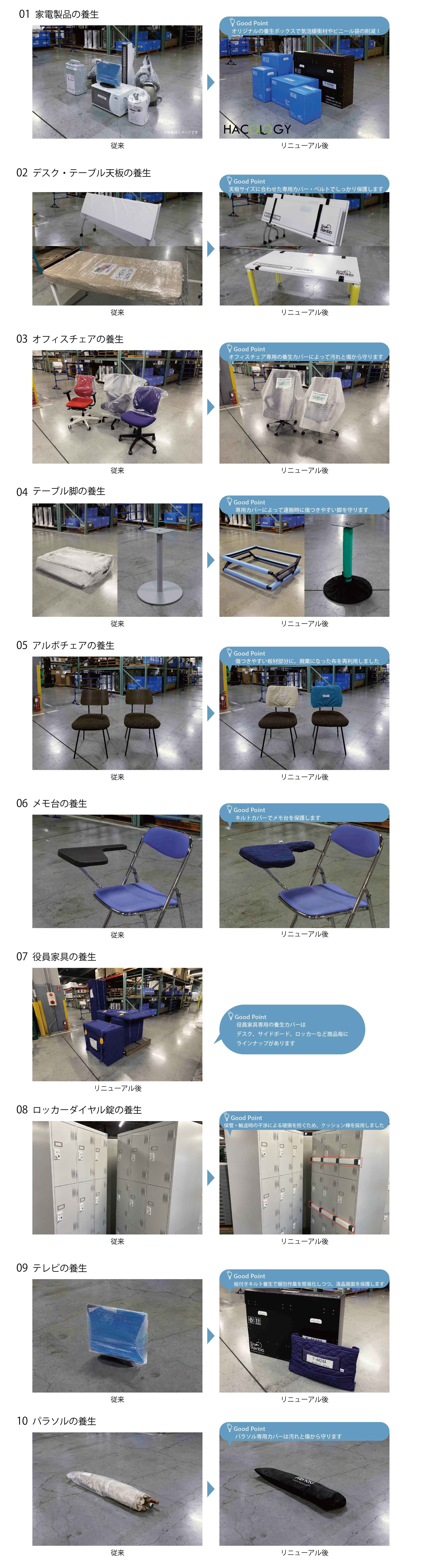 がとても重要です。レンティアではこれまで主にビニール袋や段ボール、気泡緩衝材といった養生材を使用していました。