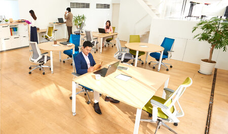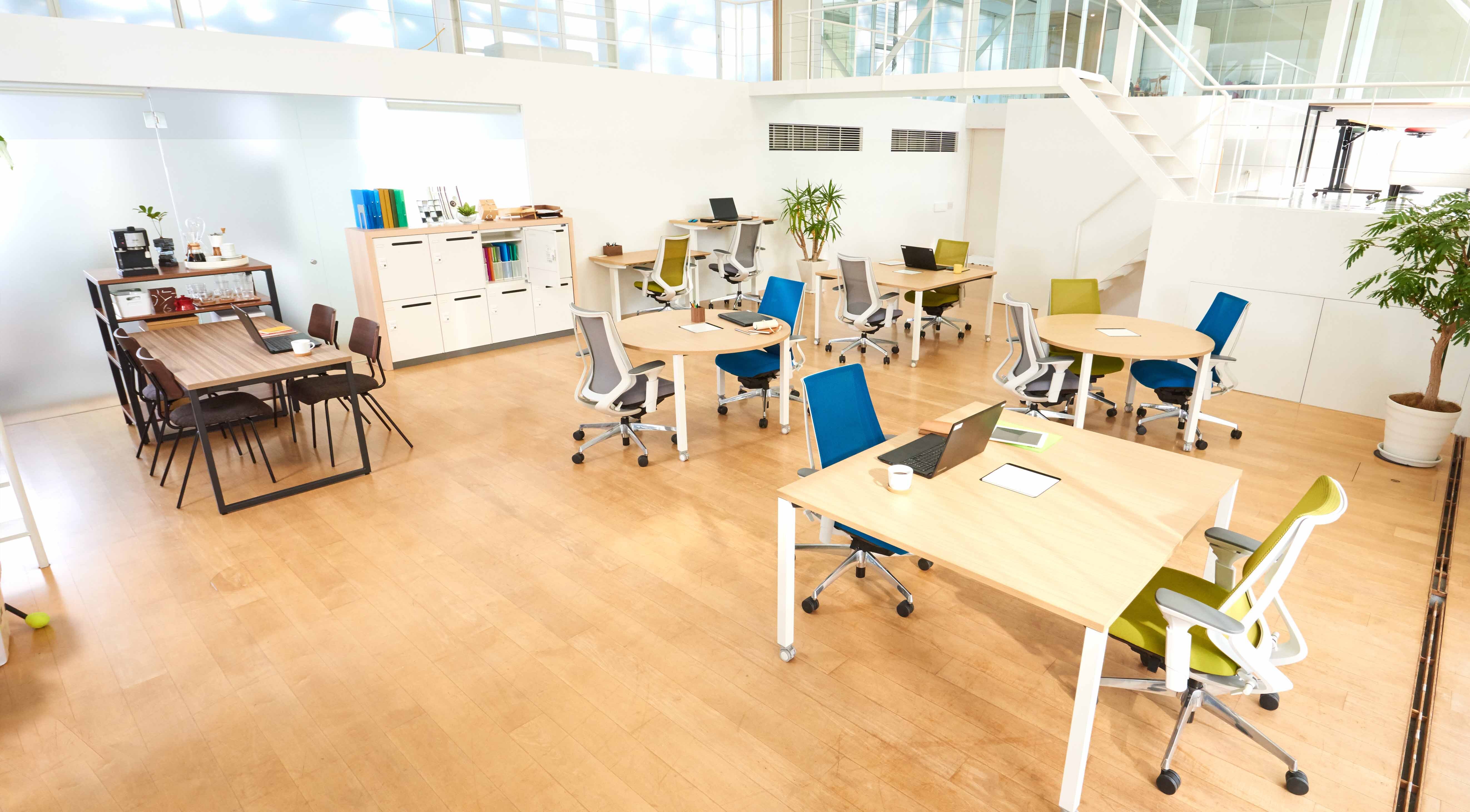 1.フリーアドレス席やミーティング席、固定席にも使用できるフレキシブルデスク![]()