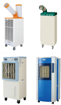 ・スポットクーラーの場合、名前の通り特定エリアを重点的に冷却する機能に長けている為、