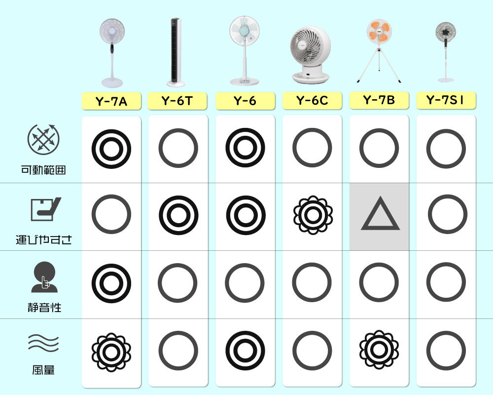 ・サイズ面でもコンパクトな商品が多く、サーキュレーターやタワーファンのように、