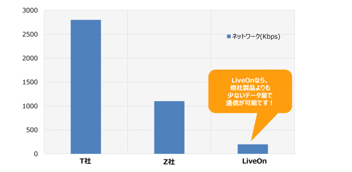 LiveOn Wearableなら他社製品と比較しても通信量が10分の1!と少ない通信量で利用することができます。