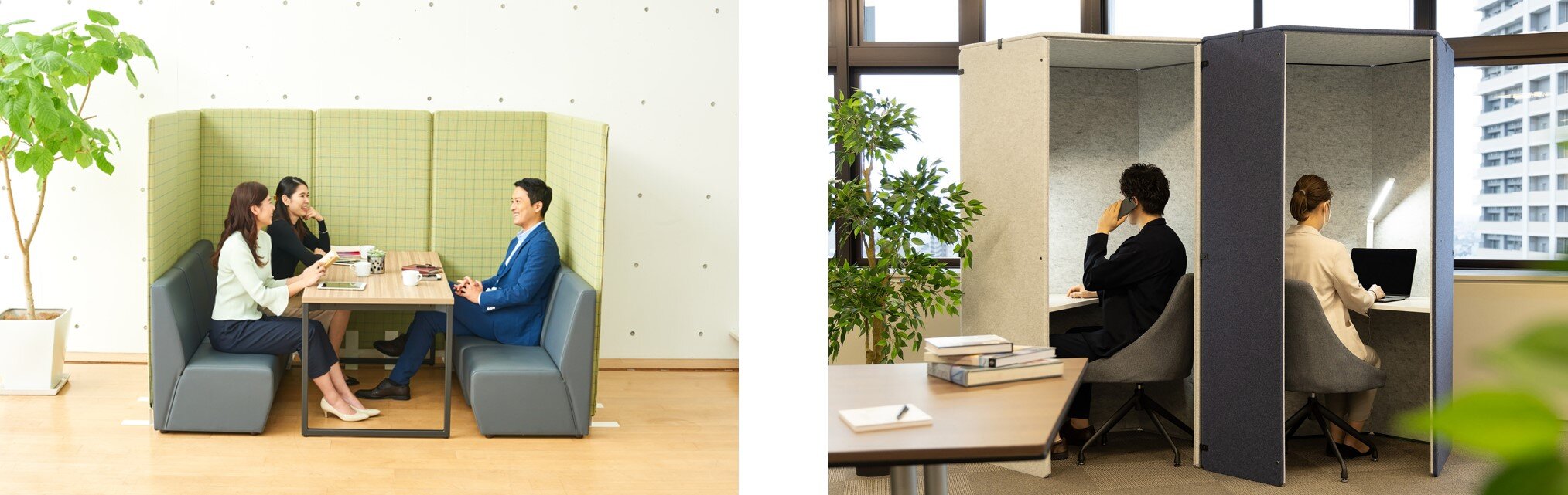 1人で作業する「集中エリア」と複数人で打ち合わせなどを行う「コミュニケーションエリア」を分離し、音環境を整備したレイアウトに変更することで、ワーカーの作業効率の向上が期待できます。コーユーレンティアではオフィスプランニングをご提案でき、お客様の快適なオフィス作りをサポートいたします。![]()