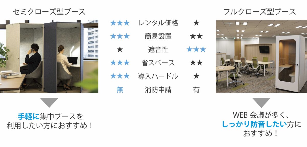 個室ブースの比較