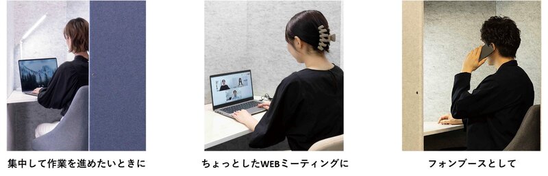 ハニカム構造の吸音パネルで騒音を軽減し、Web会議や集中作業に最適です。また、PCと書類を広げてもゆったり使え、PCやデスクライトなどの電源が取れる仕様となっています。