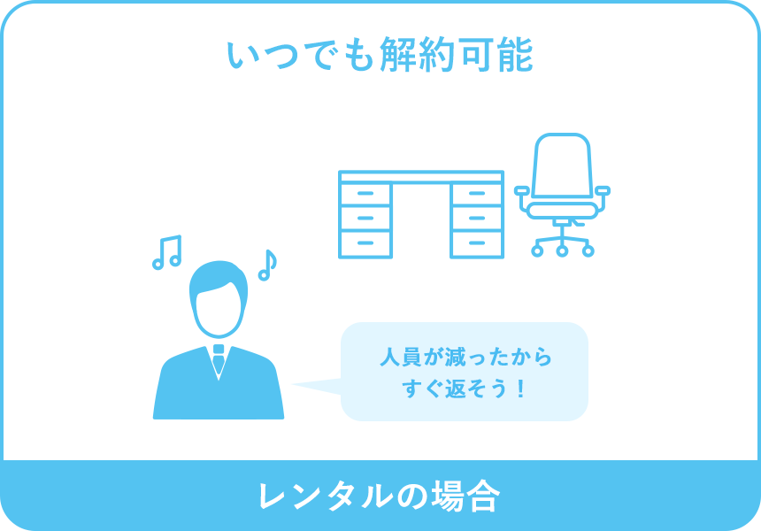 レンタルなら利用期間に関係なく、契約いただけ、返却時も違約金なしに中途解約が可能です。
