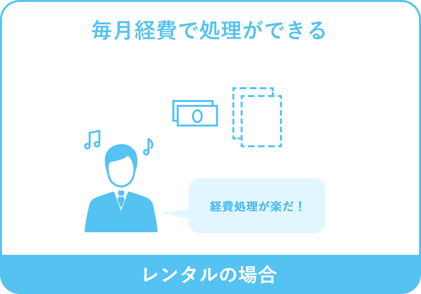 レンタルなら経費処理できるので煩わしい会計処理が不要となり、経理担当者の作業負担が軽減します。