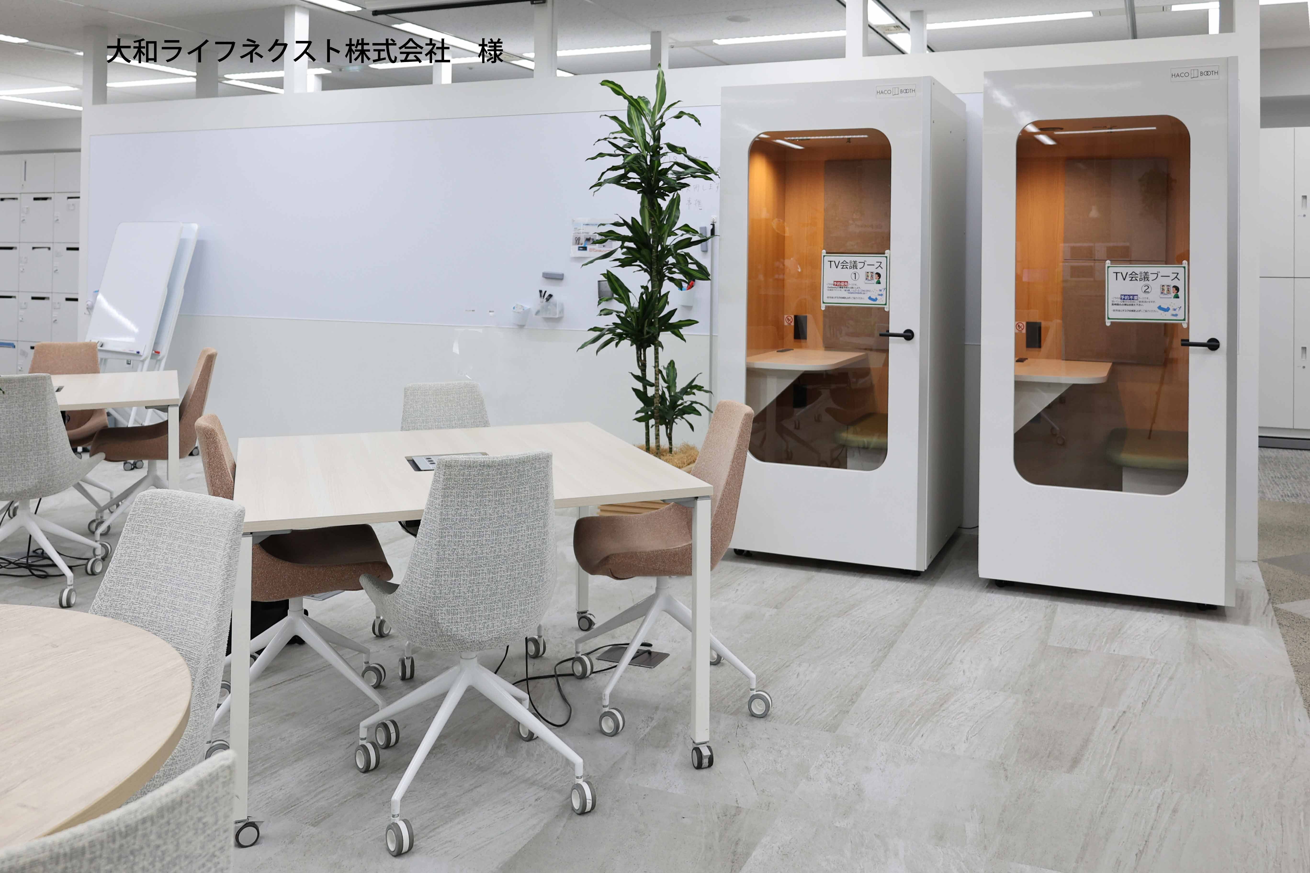 オンライン会議や商談、集中ブースとして様々な業界の方からご好評を頂いております。完全個室で、遮音効果があるため周りの音や視線を気にすることなくご利用できます。シンプルかつオフィスに馴染むデザインの為、執務エリアだけでなくリフレッシュルームや打合せエリアなど様々な場所に設置してご利用頂けます。