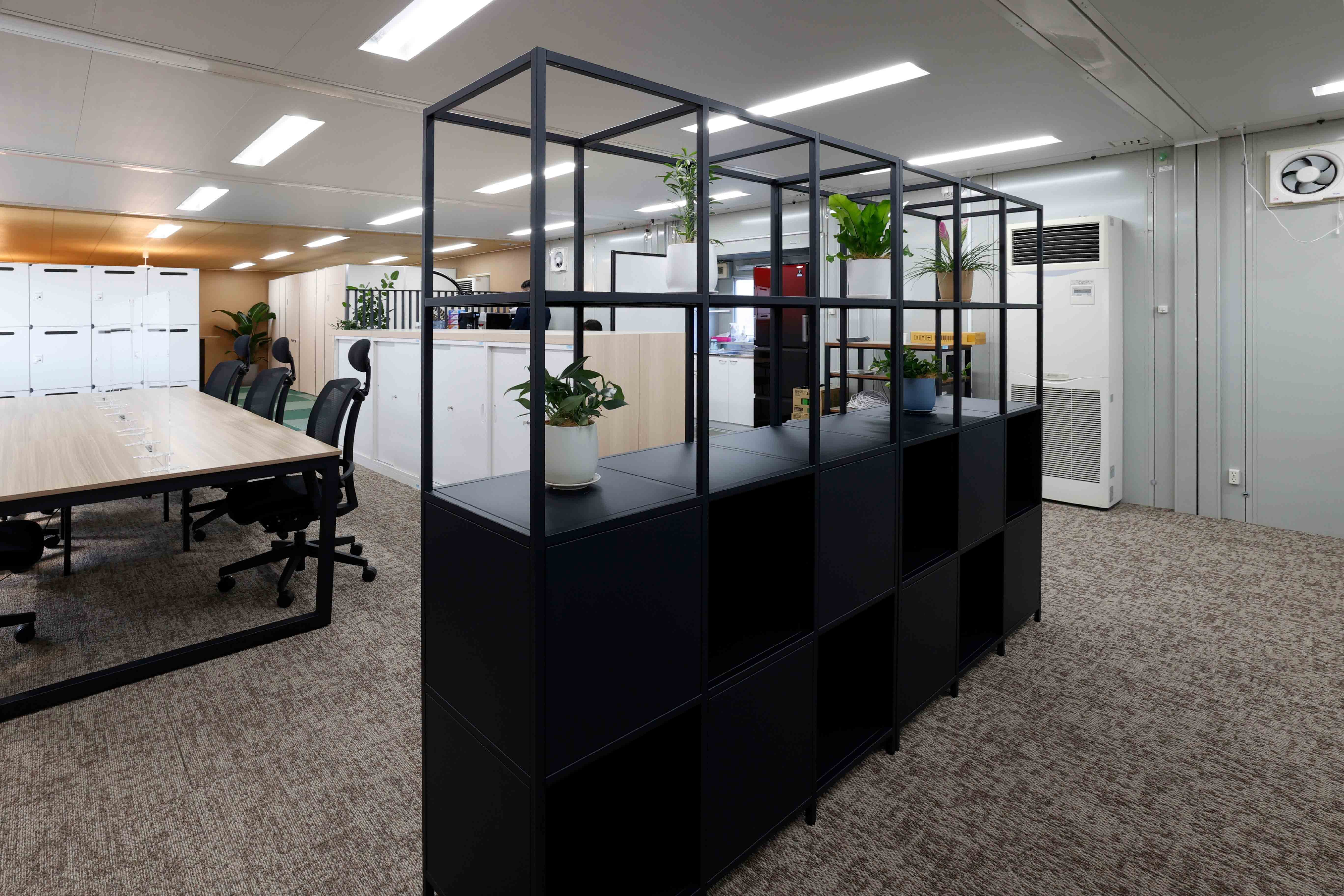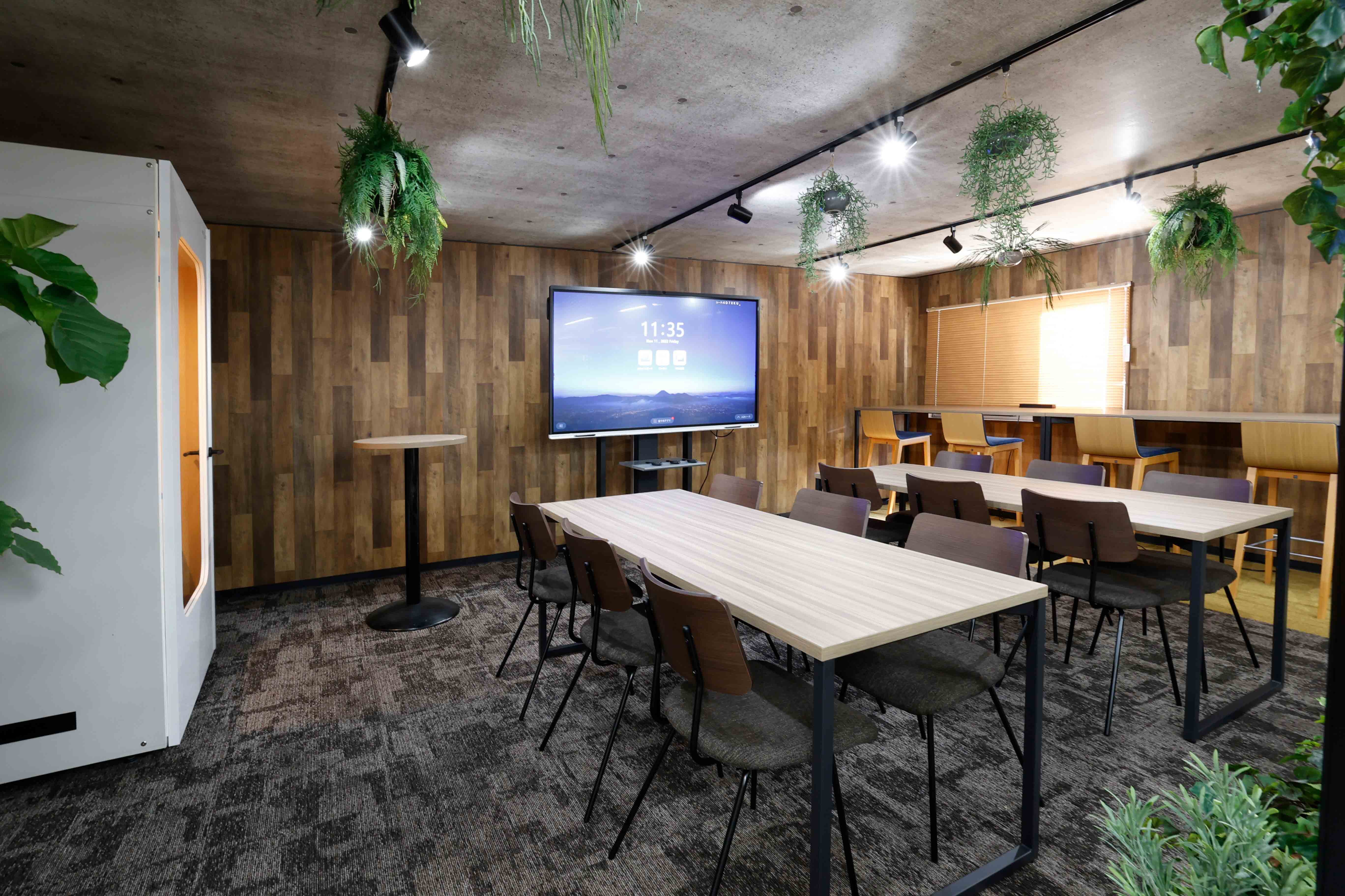 「街」というテーマを基に「Japanese style」「NewYork style」エリアを設け、街の雰囲気を備品や床・壁、照明で再現しました。1日の多くの時間を過ごすオフィスが、充実した時間と潤いのある生活を送ることで各々の能力や創造性を最大限に活かすことのできる空間にしました。「Japanese style」エリアは畳のようなデザインのカーペットと小上がりをご用意し、仕事の合間のちょっとした休憩や社員同士のコミュニケーションの場となり、社員のエンゲージメント向上を促します。「NewYork style」エリアは気軽に利用できる打ち合わせスペースとなっており、グループ作業やアイデア出しに最適です。個室ブースやインタラクティブパネルを導入し、業務効率化を図ります。また、植栽やアロマによる心身の健康をサポートします。