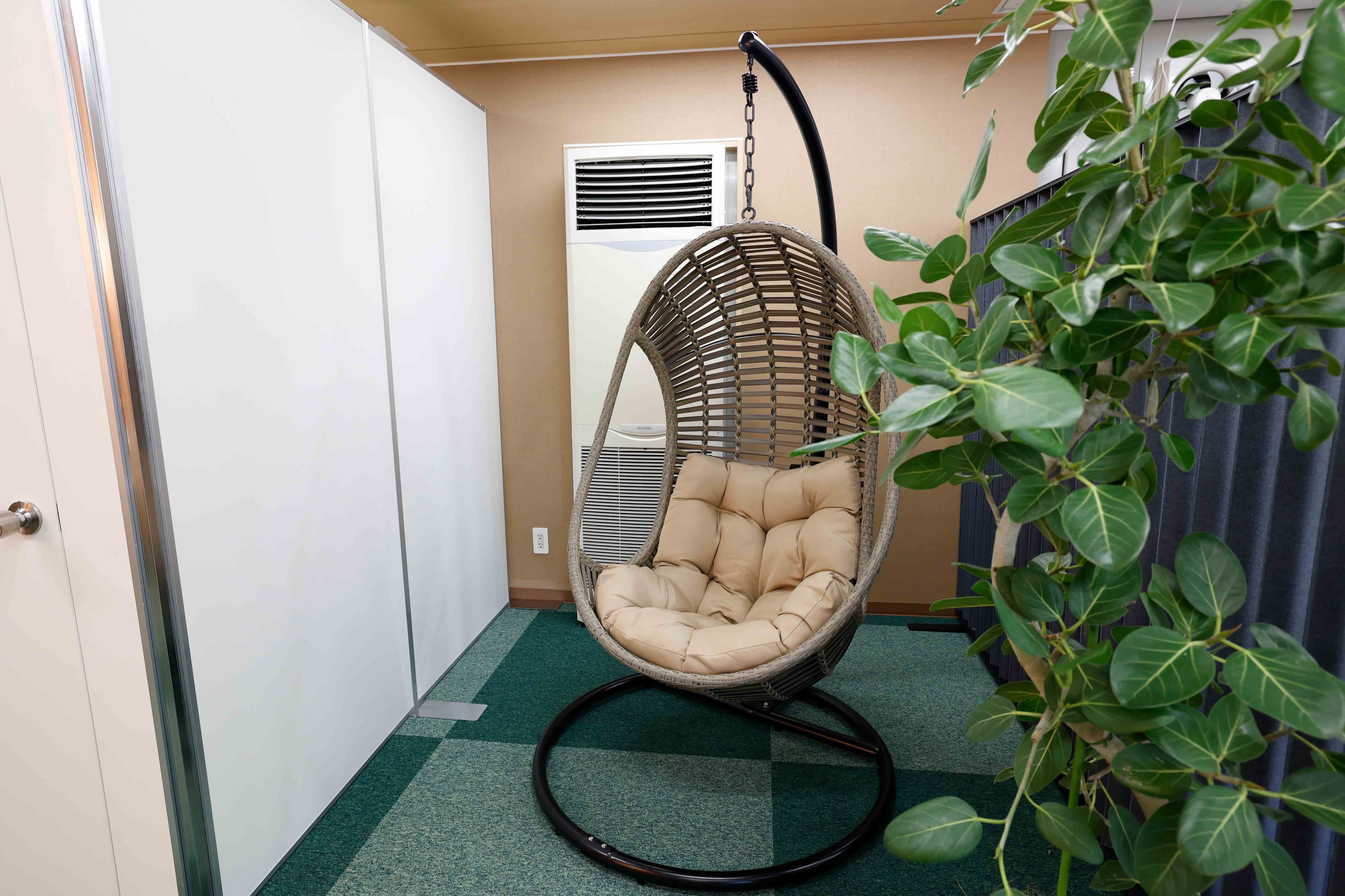 また、観葉植物を各所に配置し、アロマデュフューザーでリラックス効果を高め、イライラやストレスの軽減にもなっているのかと思います。