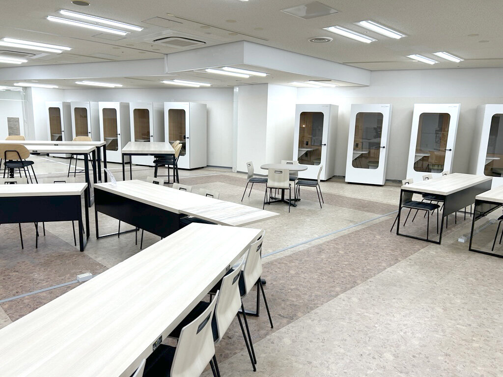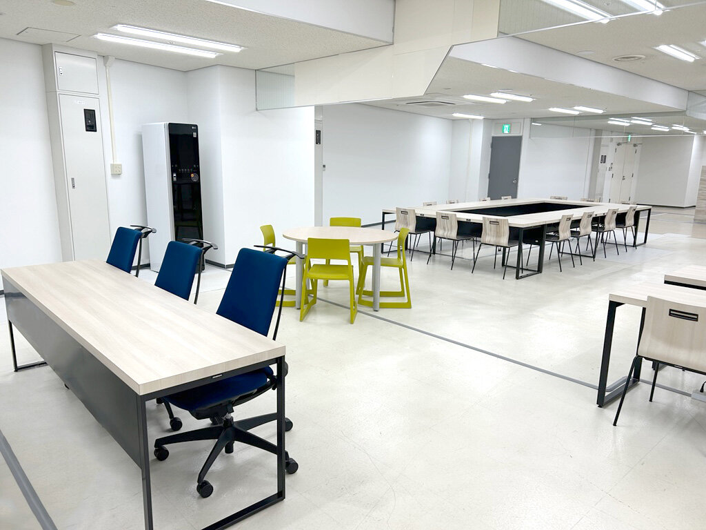 関西のオフィスソリューション営業部の拠点として入居しているATC(アジア太平洋トレードセンター)様と協業し、ビルの空きスペースに万博関係者向けのコワーキングスペースづくりをサポート。家具は当社の買取品を中心にレイアウトし、リユース顧客向けのショールームとしても活用しています。万博などでお近くに来られた際は、是非ご利用ください。