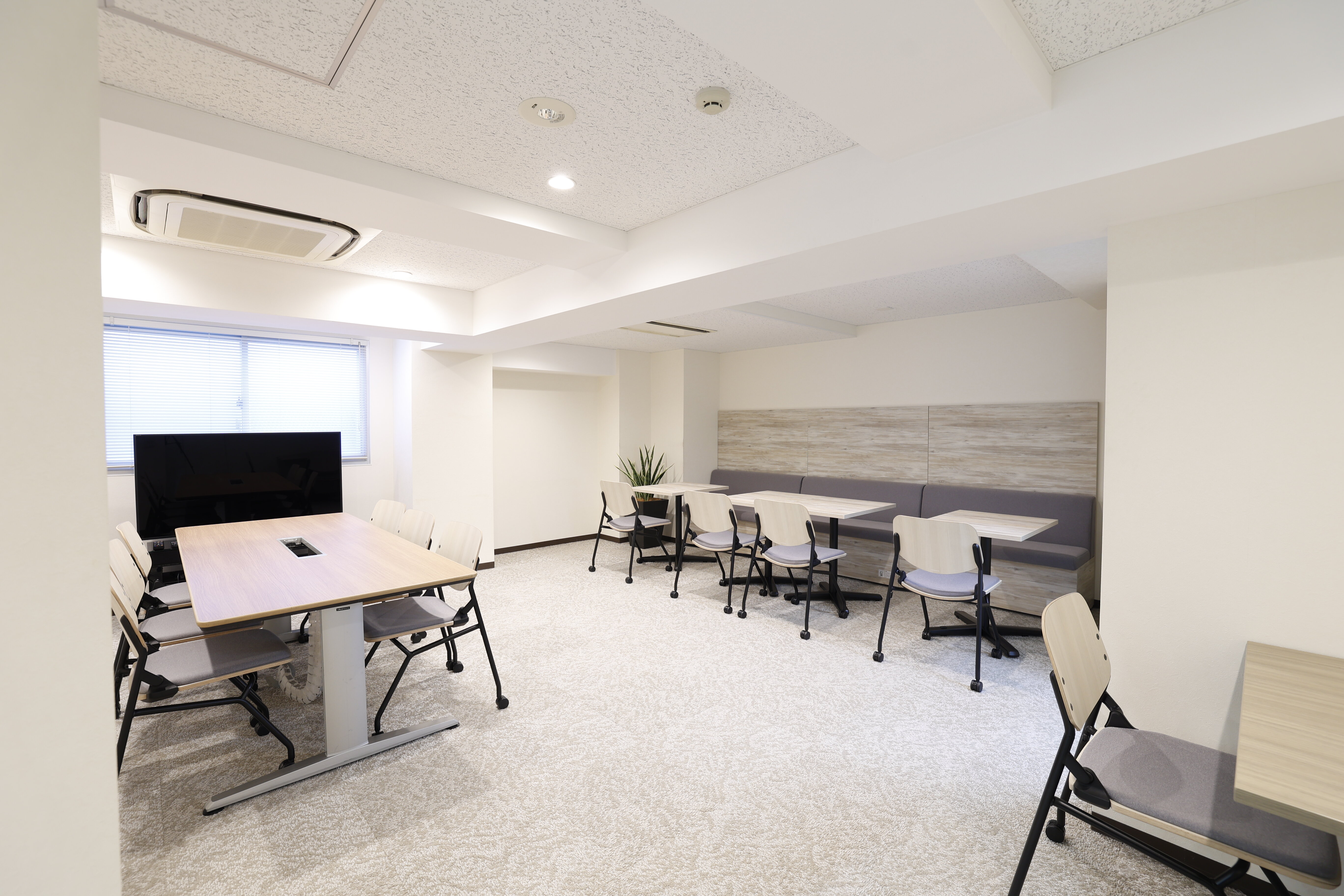単なる休憩スペースにとどまらず、執務作業やオープンミーティングなど多目的に活用できる空間をご提案しました。