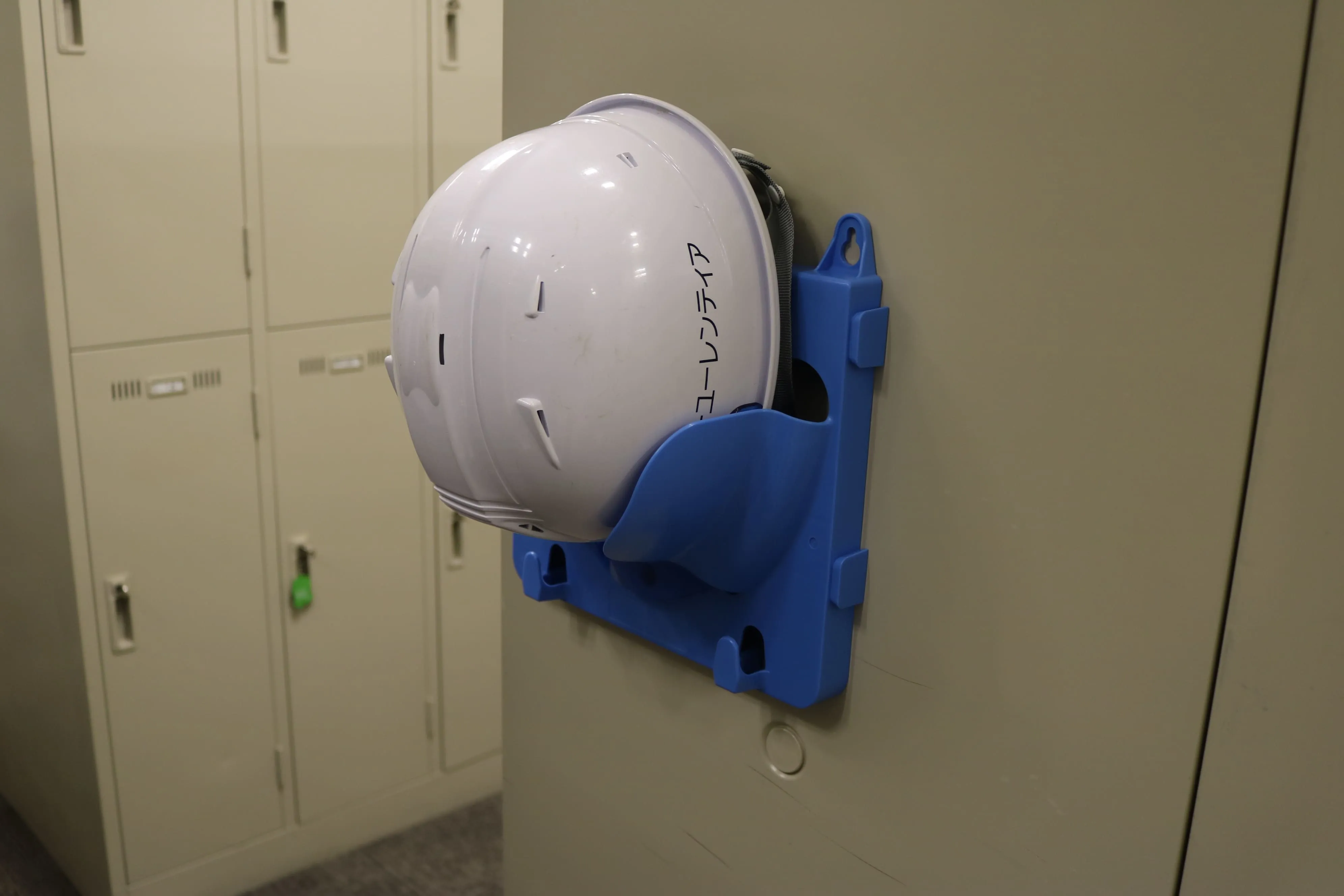 ヘルメットを掛けて収納するマグネットタイプのヘルボード。