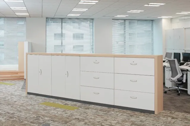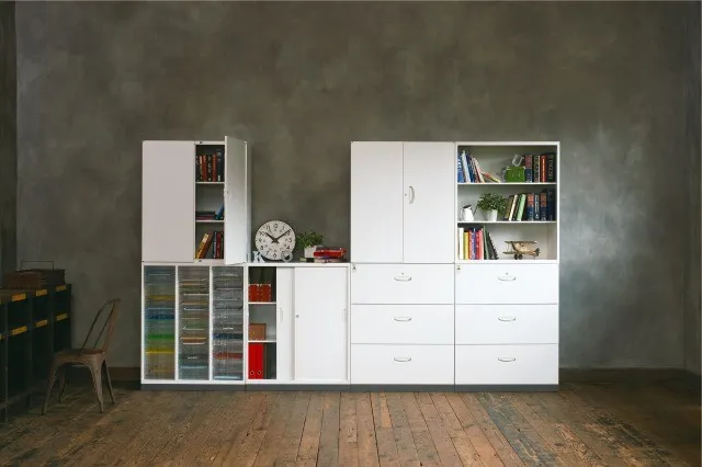 奥にある書類もらくらく出し入れ可能です。A4縦のファイルが3段収納可能です。