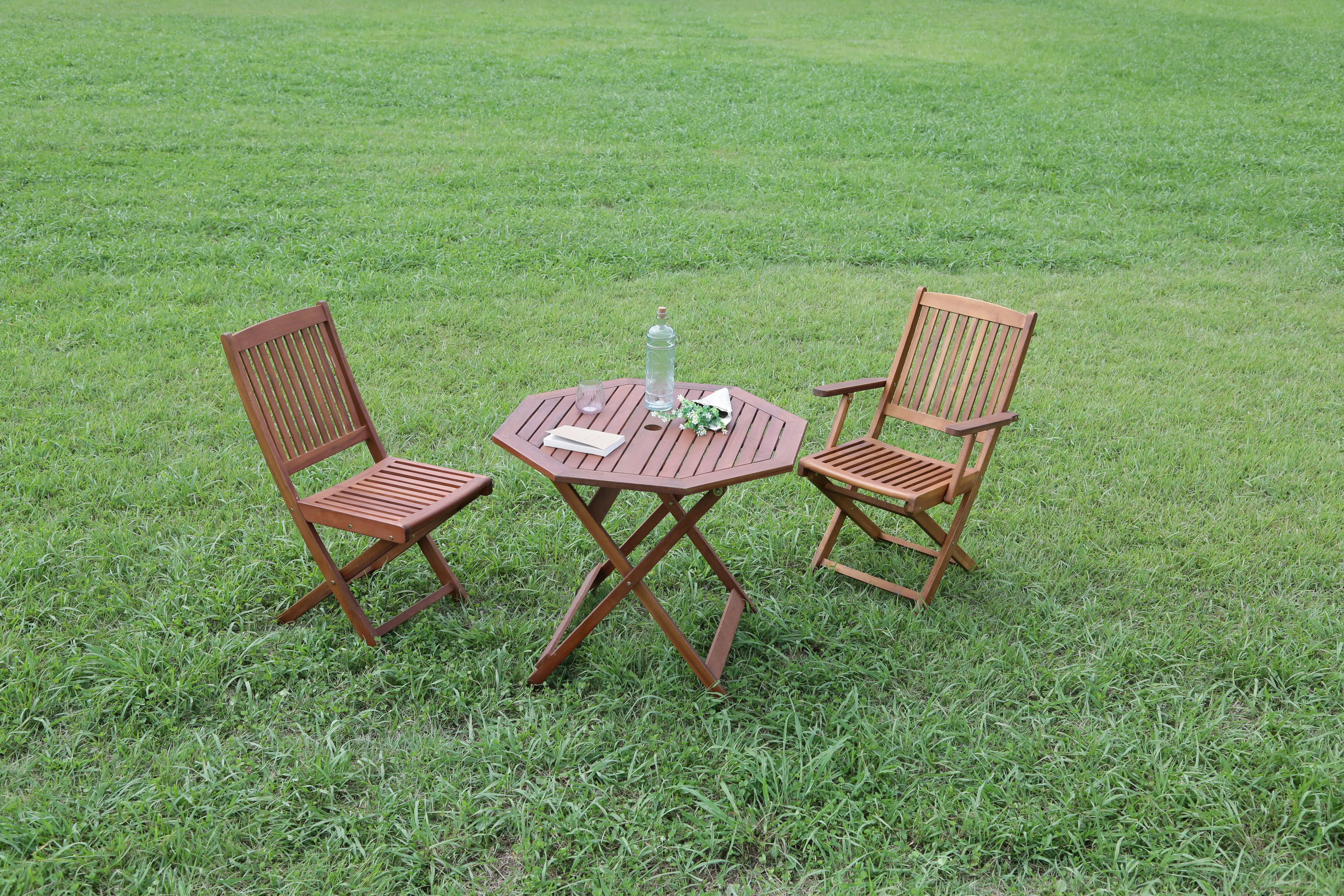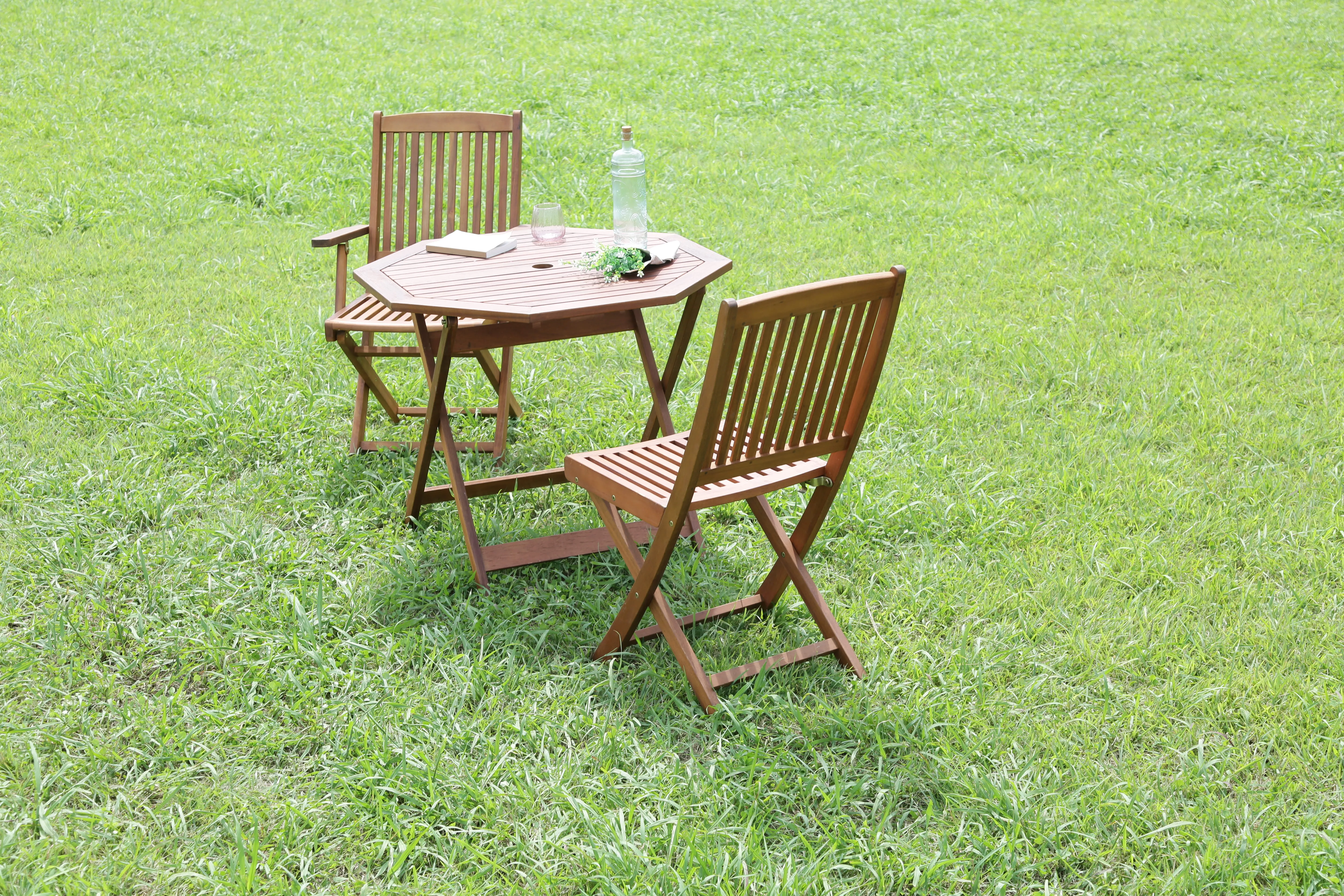 屋外でも使用できる木目調のチェア。 折り畳み可能で落ち着いた色合いの為、様々な場所で使用できます。