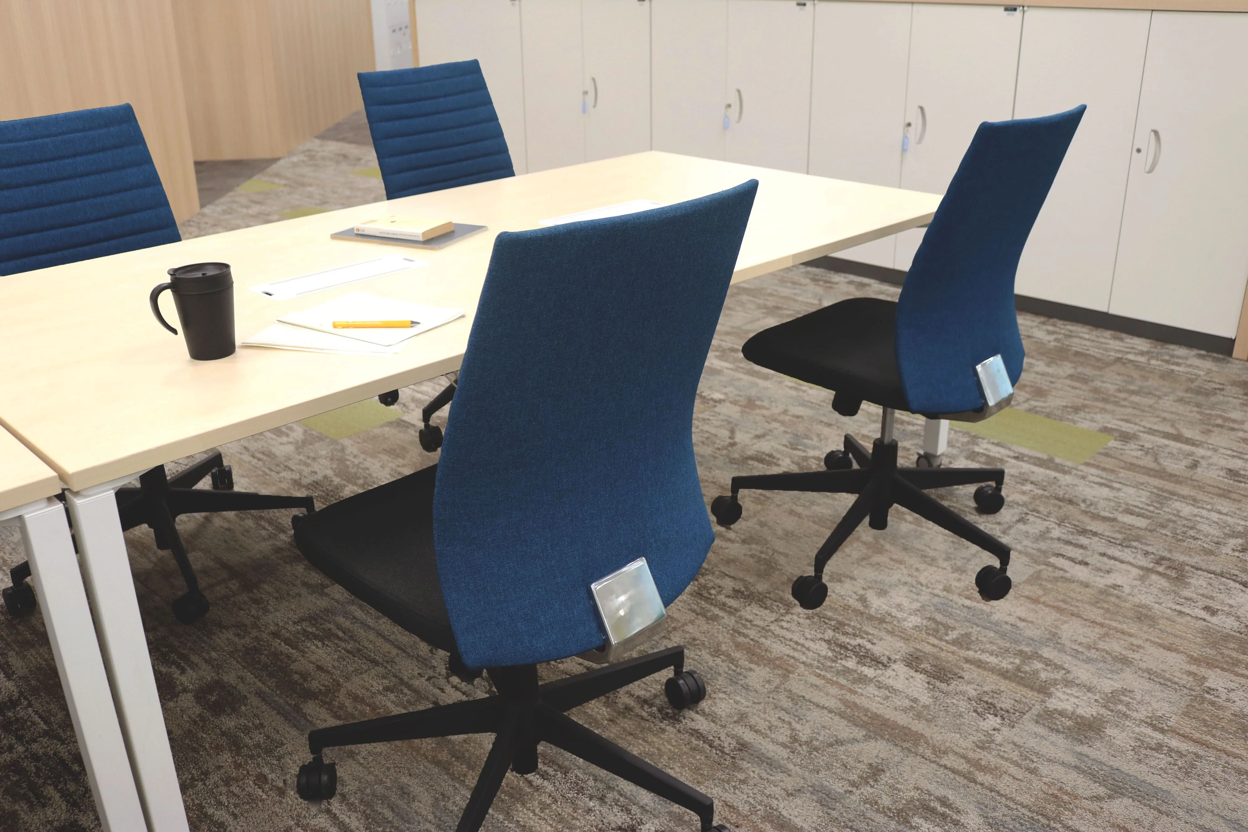座はグレー、背はネイビーの落ち着いた色合いの為、どんな事務所にもフィットするフレキシブルなOAチェアです。
