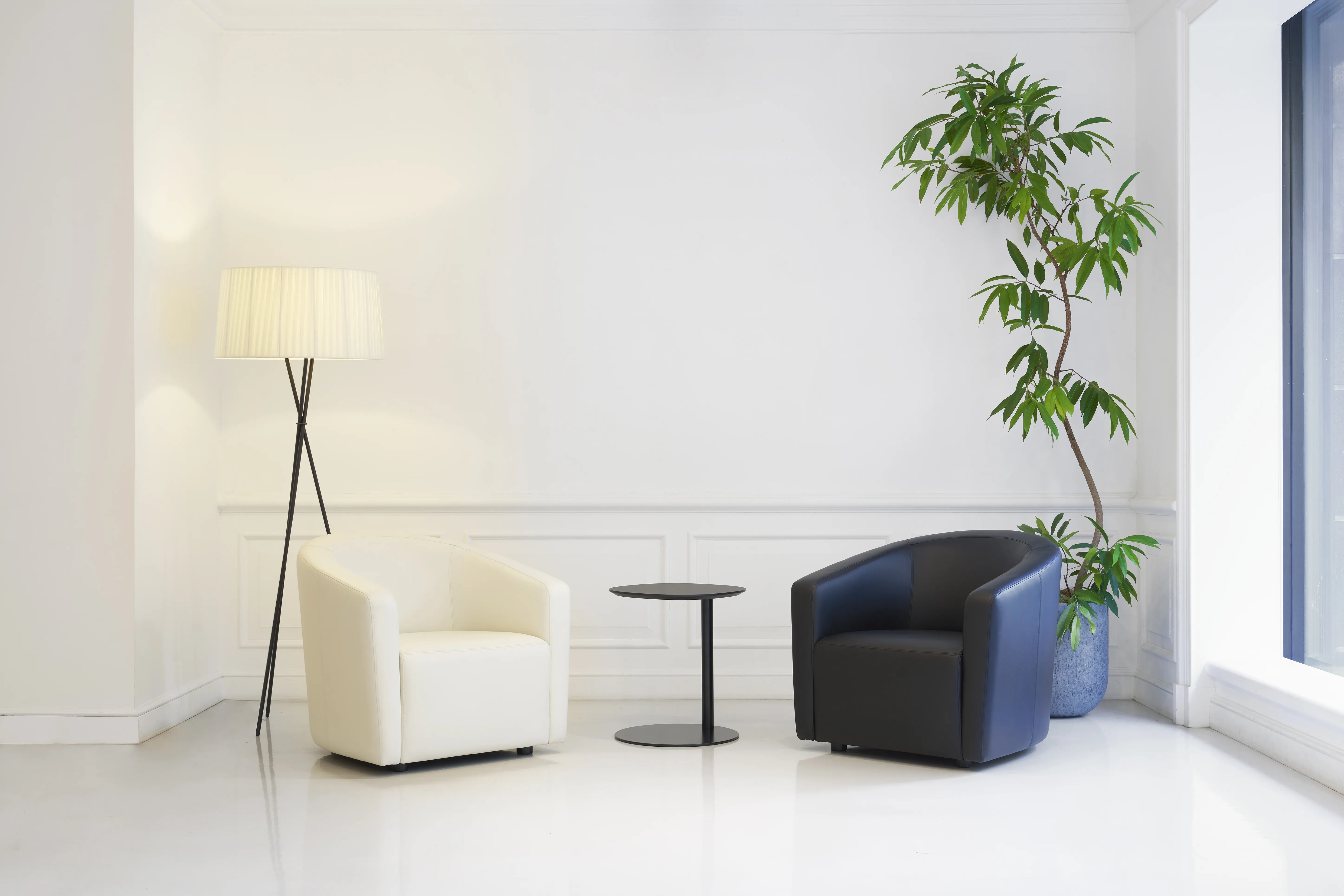 海外の方でも安心。エントランス等の待合いスペース・くつろぎのラウンジスペース・対談用など、VIPをおもてなしするゆったりサイズの1人掛けアームソファ。