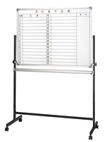 シンプルながらも使いやすい、オーソドックスなキャスター付きタイプのホワイトボードです。 社員の行動予定管理に最適な、月間予定表タイプです。