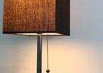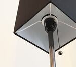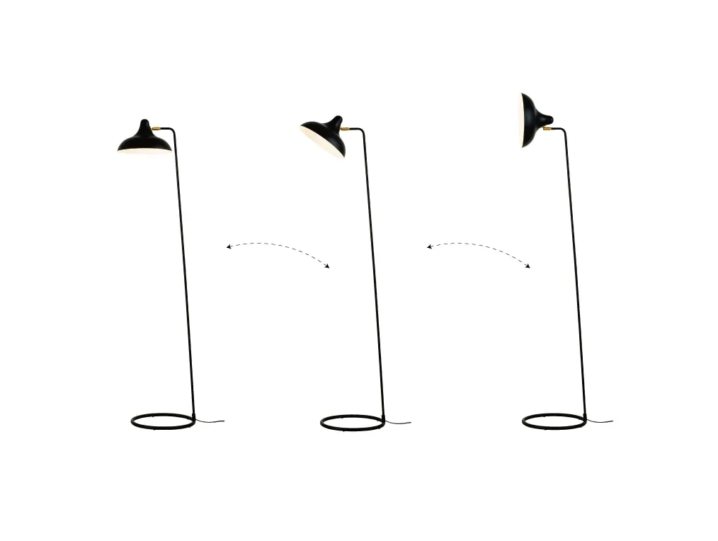 シャープで直線的な支柱にポーラーハットをイメージしたシェードが特徴的なモダンなフロアライト。