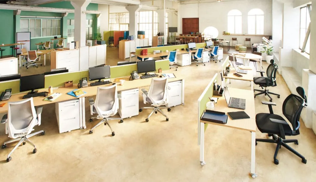 スペースの狭い事務所では壁面に並べることで固定席としても活用頂けます。