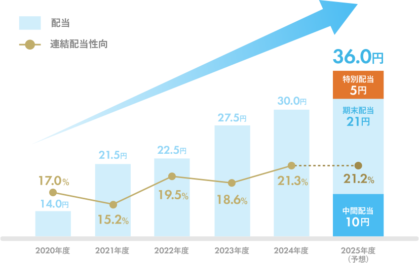 ※ 2025年1月1日付で1対2の株式分割を実施。2024年度以前の配当については、株式分割を考慮し、遡及修正して表示しております。