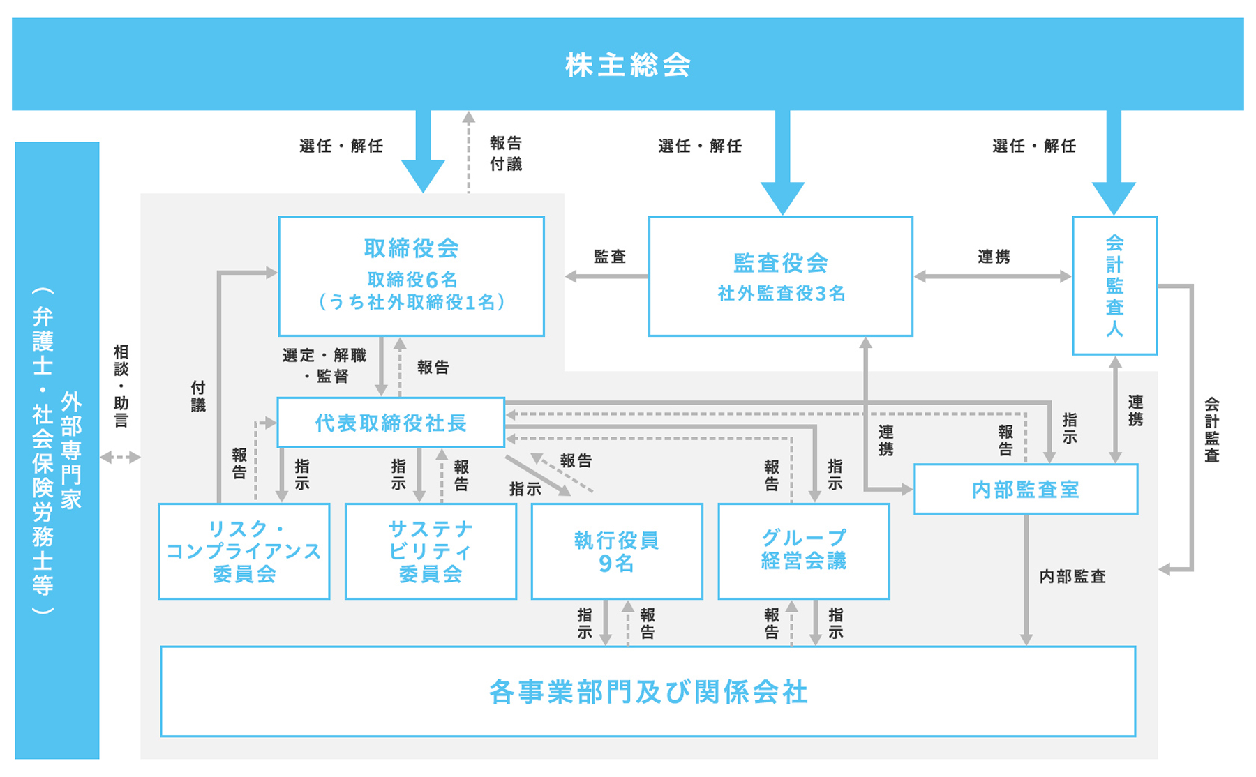 これらの理念の実践とコーポレート・ガバナンスの構築を会社経営上の基本として積極的に取り組むことにより、迅速果断な意思決定及び意思決定に基づく執行と監督を適切に実施し、経営の効率性を高めるように努めております。