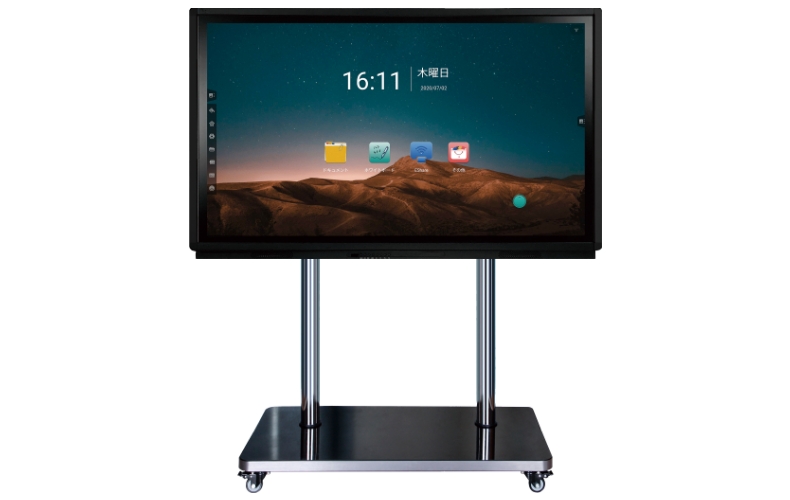 43インチから86インチまで取りそろえたホワイトボード機能付きタッチディスプレイ。 ブラウザを搭載しているので、PC要らずで Webページやネットのシステムなどを閲覧・操作が可能です。ネットワークに接続することでミラーリング機能を使用することが可能です。