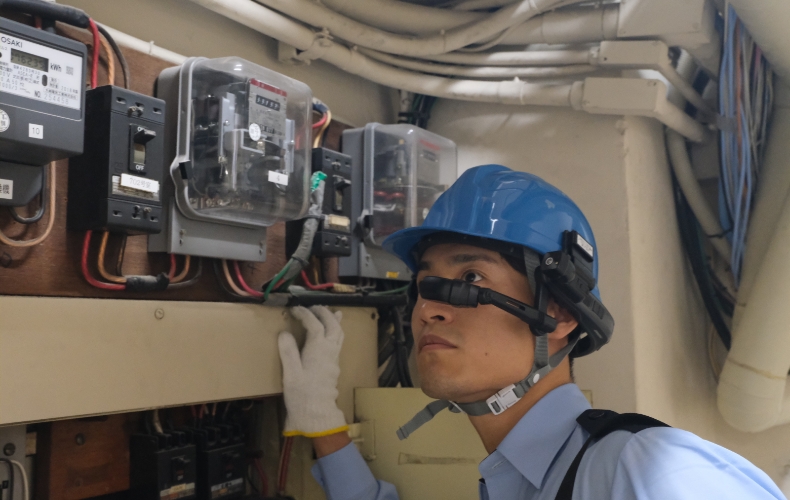 離れた場所にいる管理者と現場の作業者が映像と音声、資料などを共有しながらリアルタイムに通信し、“現場に足を運ぶことなく作業支援や指示・情報共有を行える”遠隔作業支援ツールです。頭部に装着することでハンズフリーとなり、両手を塞ぐことなく作業ができます。