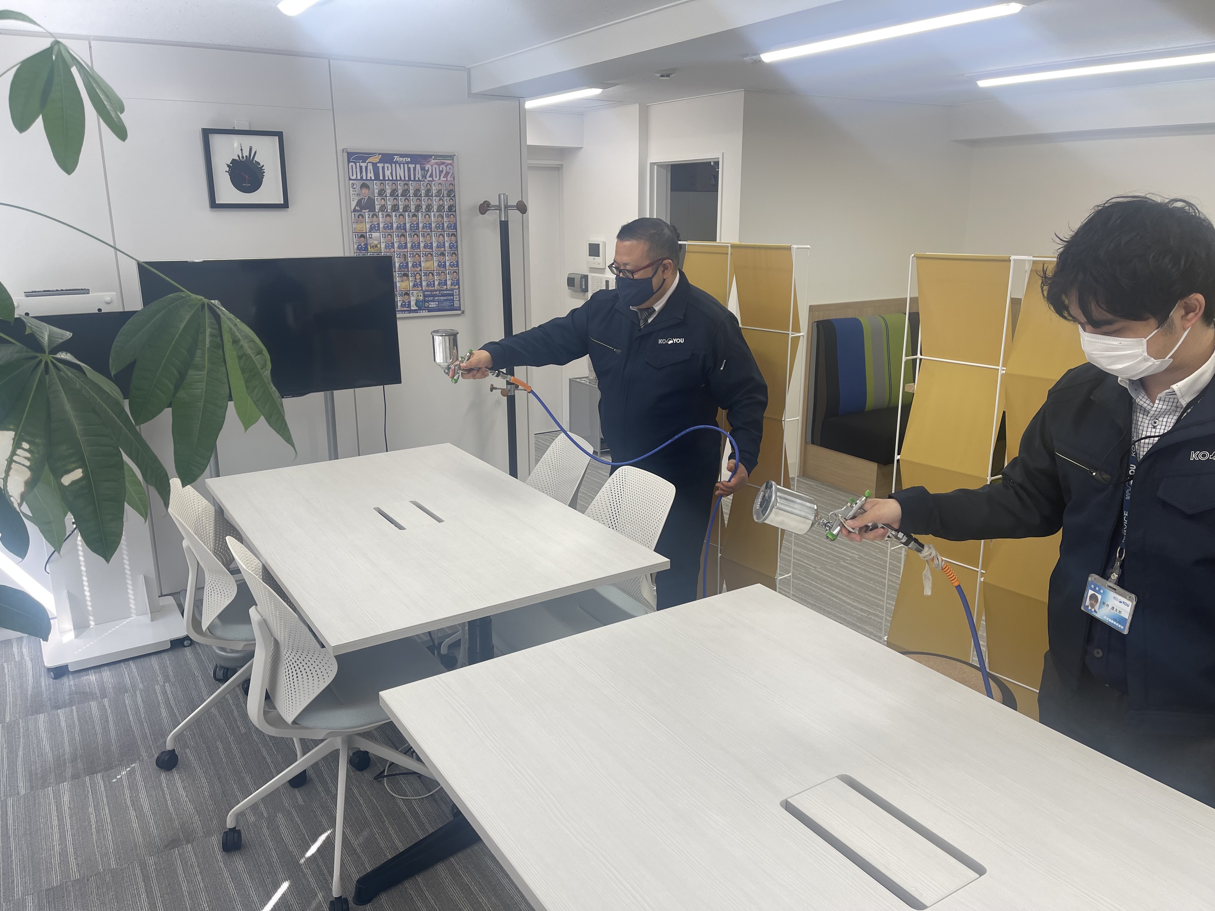 今回、広友物産・広友サービスブースでは、抗菌・抗ウイルスコーティングサービス「ヘルスブライト」を実際に塗布するデモンストレーションを行いながらサービスのご紹介をします。