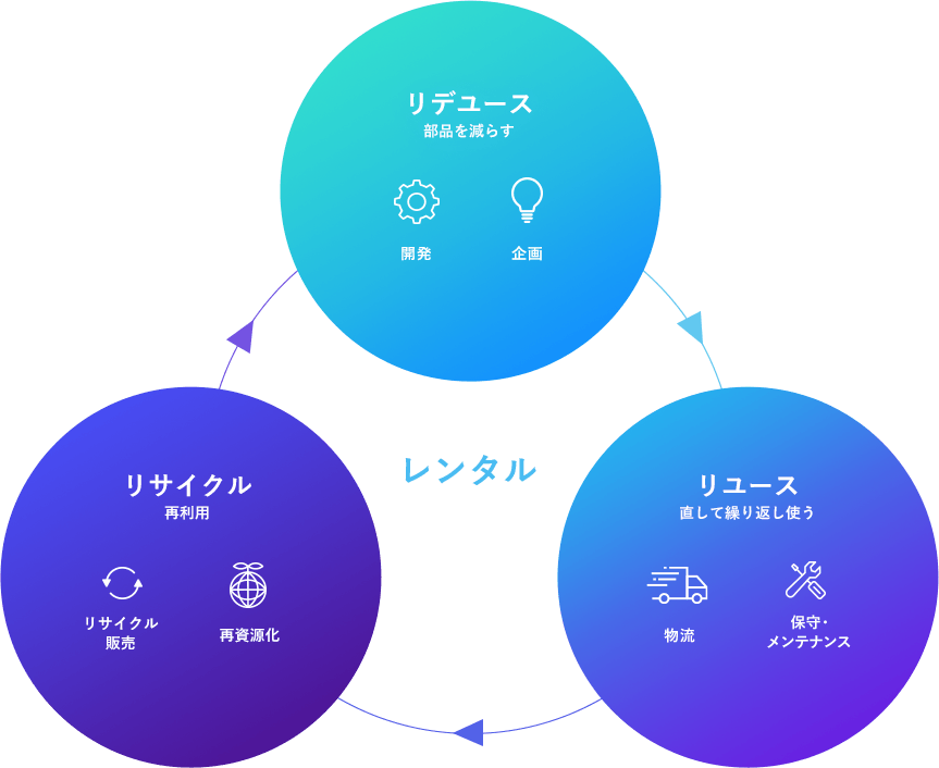 レンタルとして提供していた製品を独自のメンテナンス技術で再生し、中古(リユース)品として販売する 「リサイクルショップ リスタ」を運営。 "リユース"だけではなく、修理して使う"リペア"や、新たな付加価値を生みだす "リメイク"を通して、真の循環型社会の形成に貢献していきます。